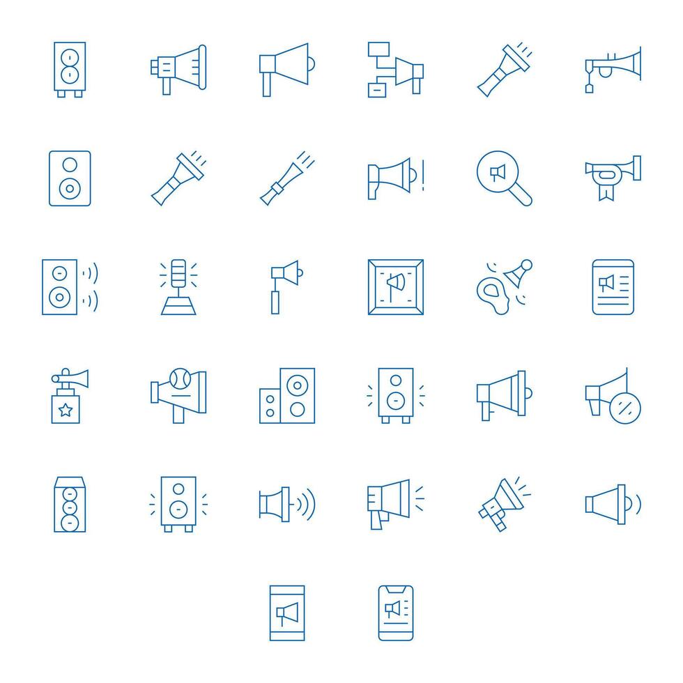 Loudspeaker Scalable Set featuring 32 Pixel Aligned Thin Line 64x64 Icons vector