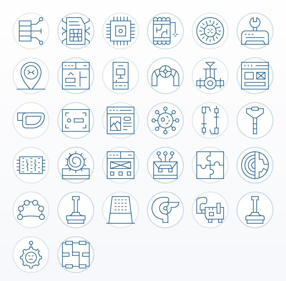 Component Comprehensive Bundle with 32 Pixel Aligned Thin Line Retina Ready Icons vector