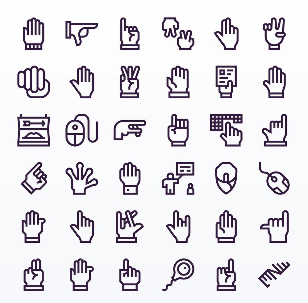 36 High Resolution Icons for Pointing in Grid Fitted Bold Line Format vector