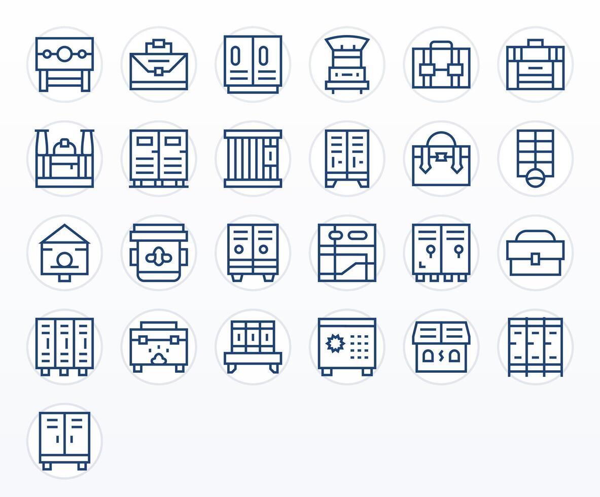 Locker Scalable Set featuring 25 Editable Regular Line 128x128 Icons vector