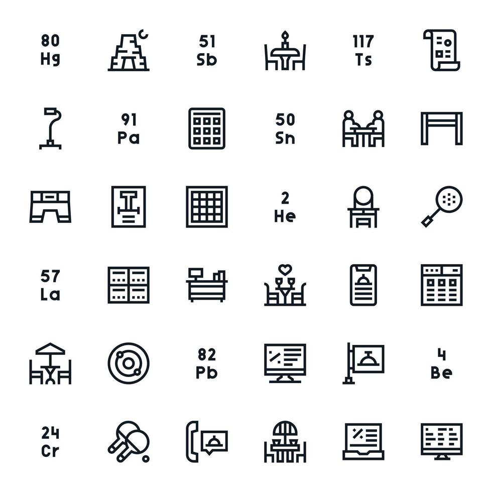 Table Design Icons featuring 36 Pixel Optimized Bold Line Style vector