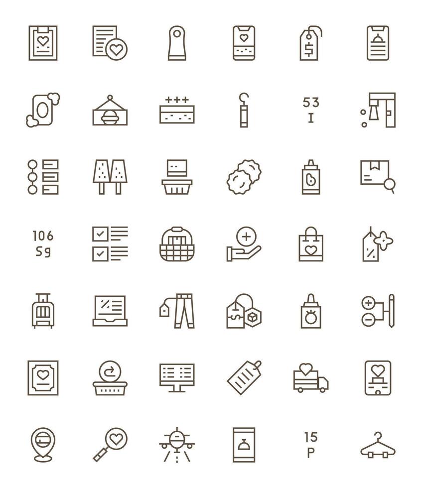 42 Icons inspired by Item in Grid Fitted High Resolution Regular Line quality Free Vector