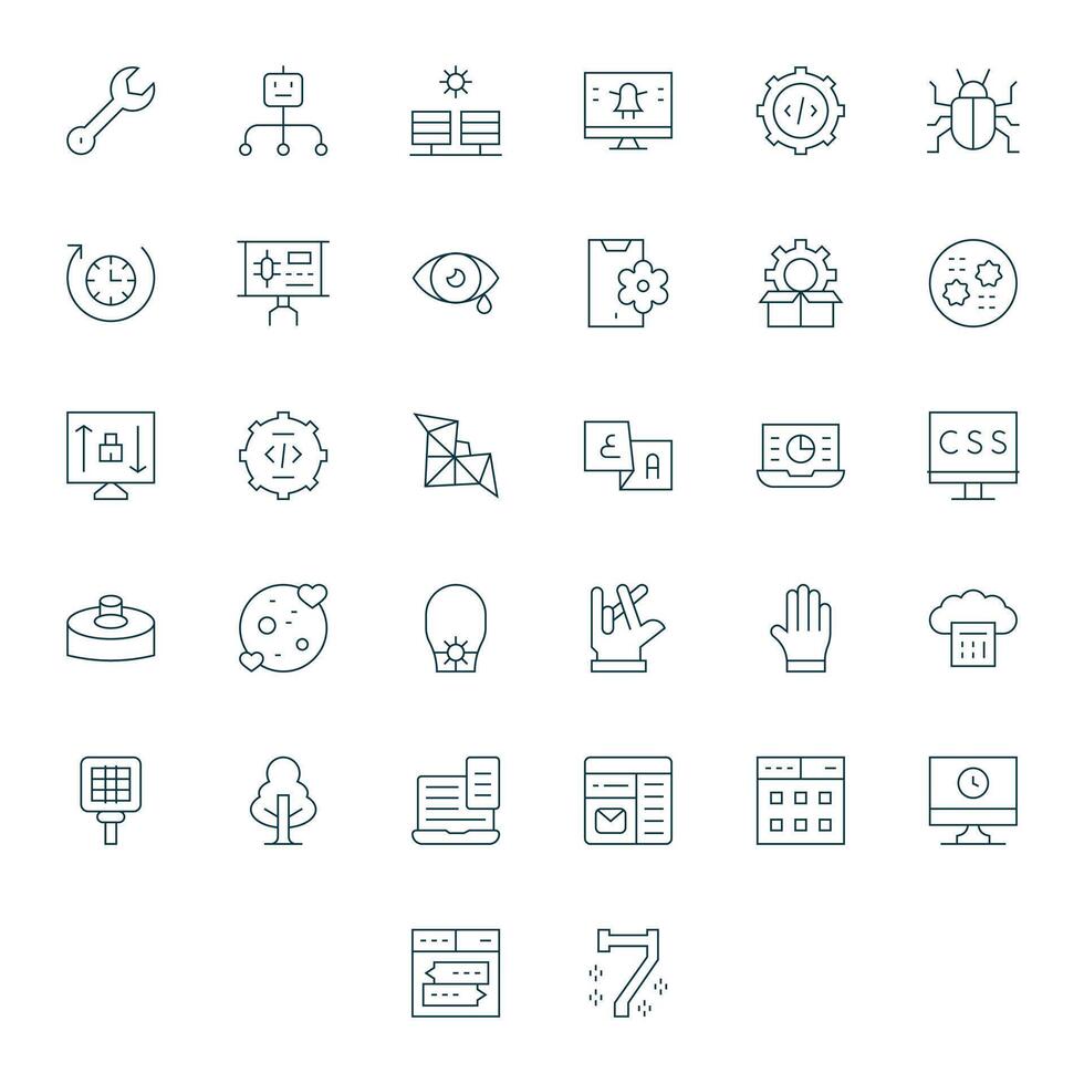 32 Display Perfect High Resolution Icons for Software in elegant Thin Line design Free Vector
