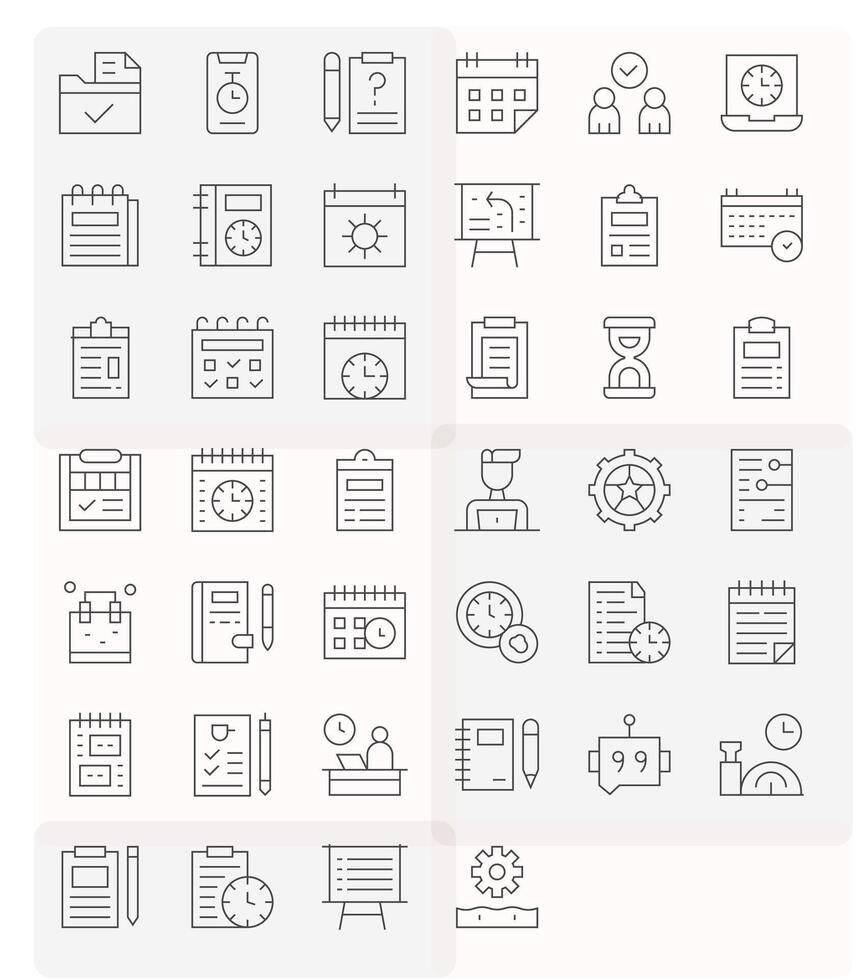 40 Pixel Aligned Thin Line Icons from Task Collection Free Vector