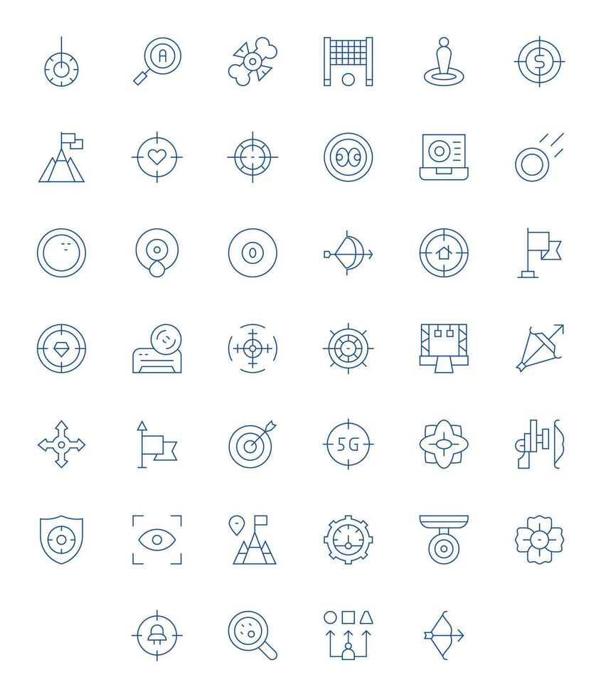 Target Icon Set with 40 Thin Line 128x128 PIXEL Perfect Graphics Free Vector