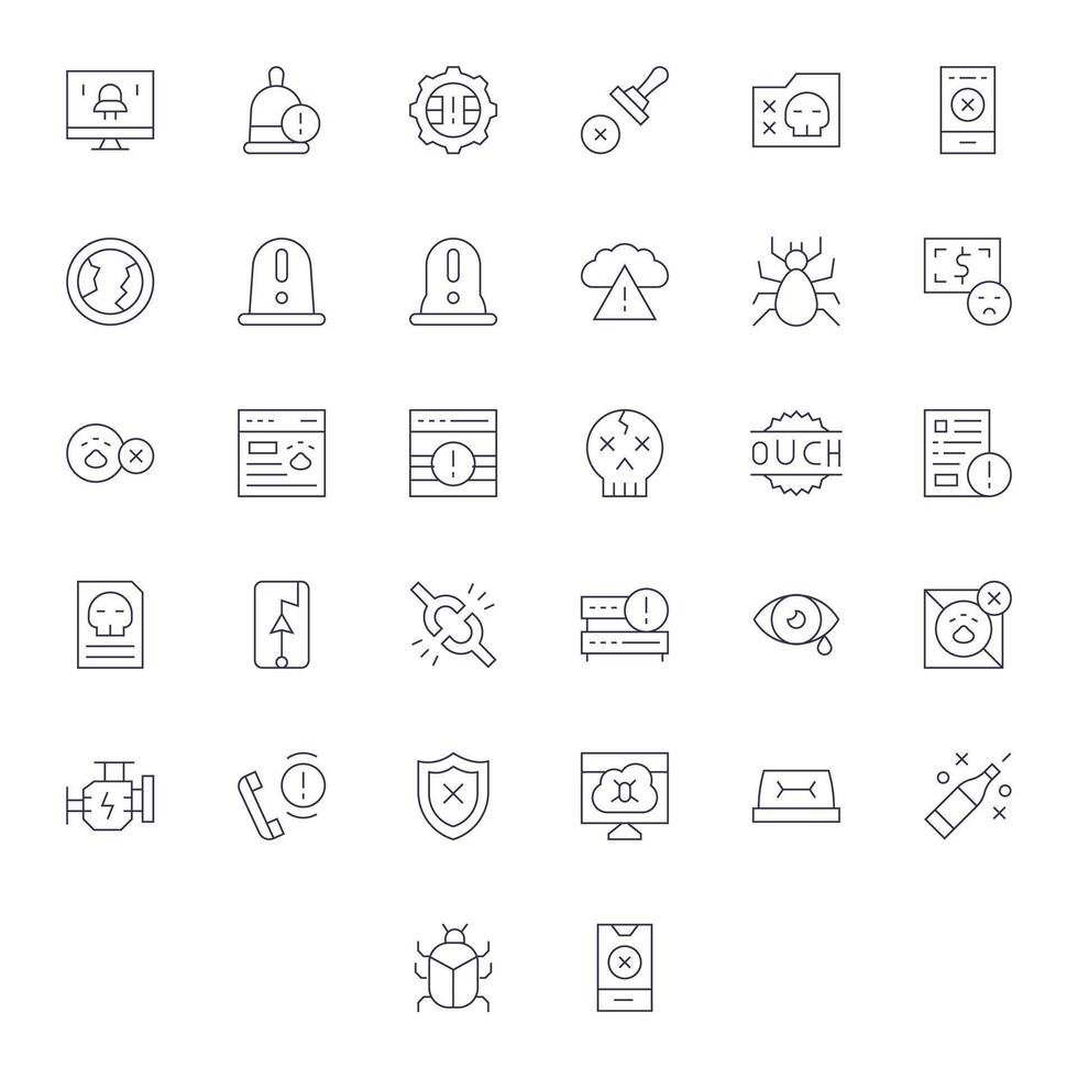 32 Pixel Aligned Thin Line Icons from Error Collection vector