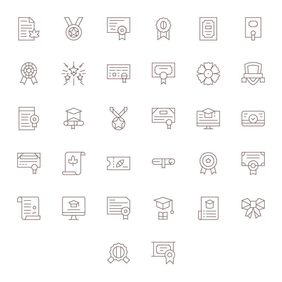 Thin Line Style Certificate Icons with 32 High Resolution Pixel Optimized Designs vector