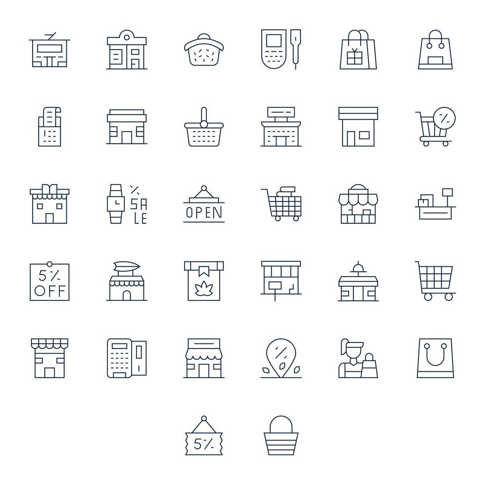 Retailer Pixel Aligned Set with 32 High Resolution Thin Line Icons Free Vector