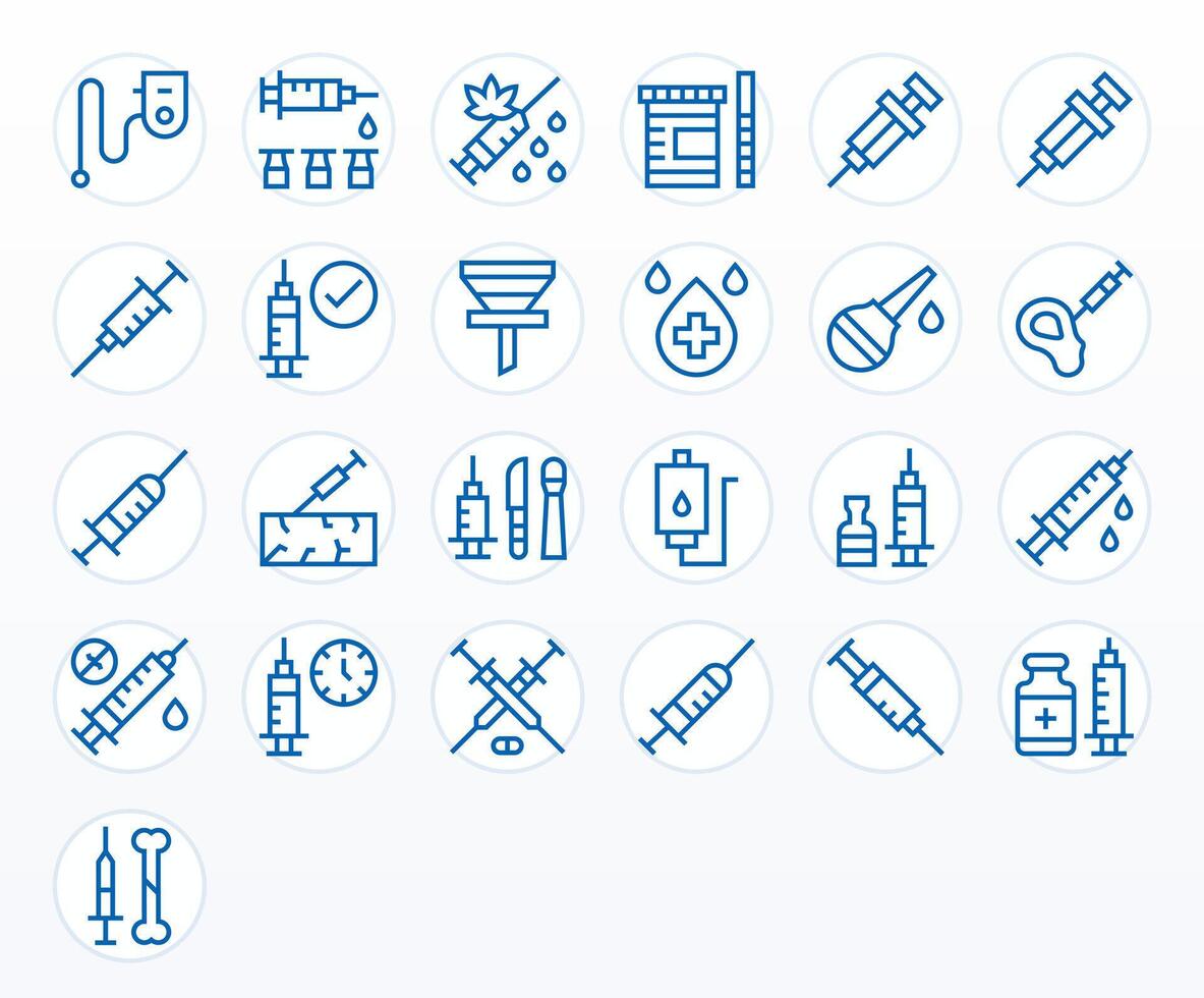 25 Regular Line Icons for Syringe in crisp High Resolution Grid Fitted resolution Free Vector