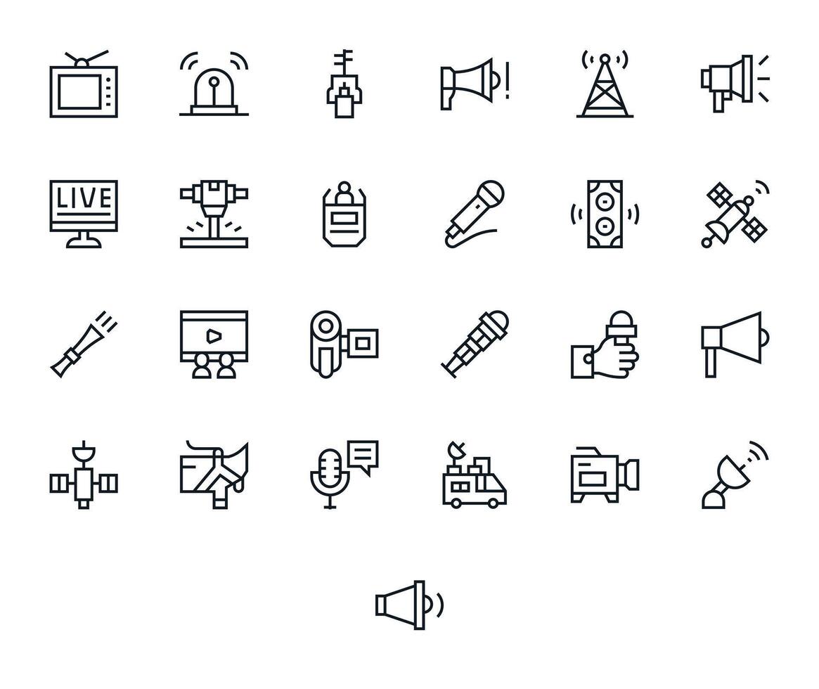 Broadcast Display Perfect Set with 25 256x256 Regular Line Icons Free Vector