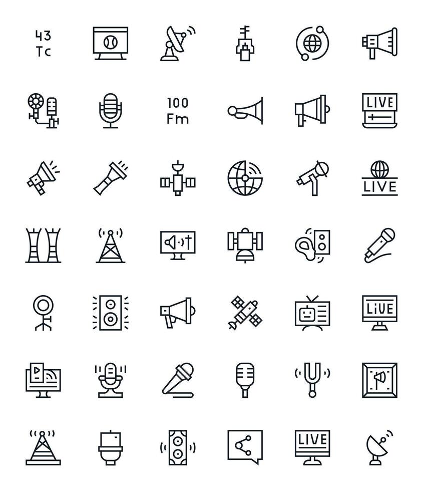 Broadcast Icon Repository containing 42 Regular Line 128x128 Grid Fitted graphics Free Vector