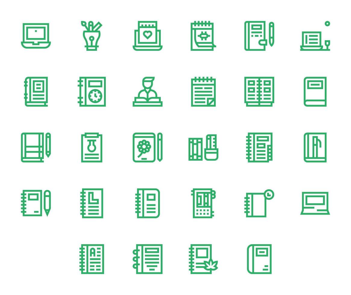 Notebook Comprehensive Bundle with 28 Grid Fitted Bold Line Retina Ready Icons vector