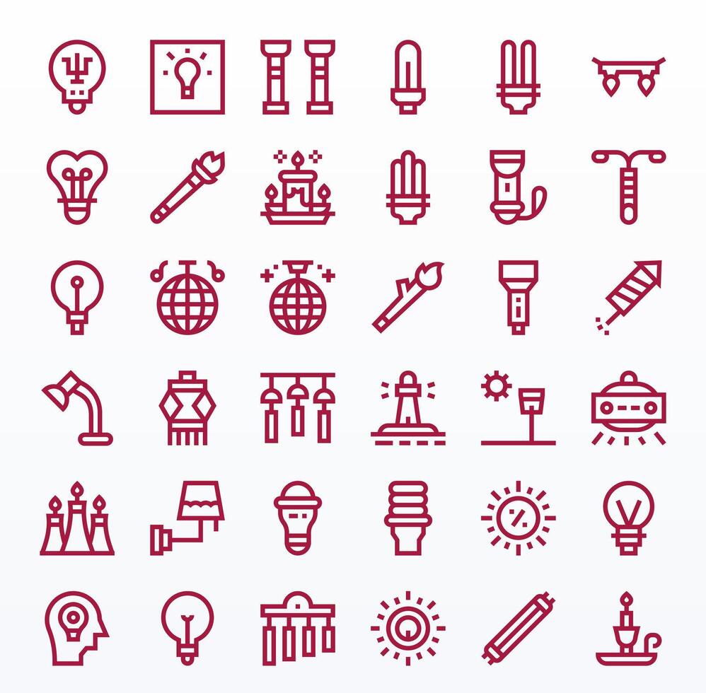 Illumination Digital Pack containing 36 Pixel Optimized Bold Line High Resolution Icons Free Vector