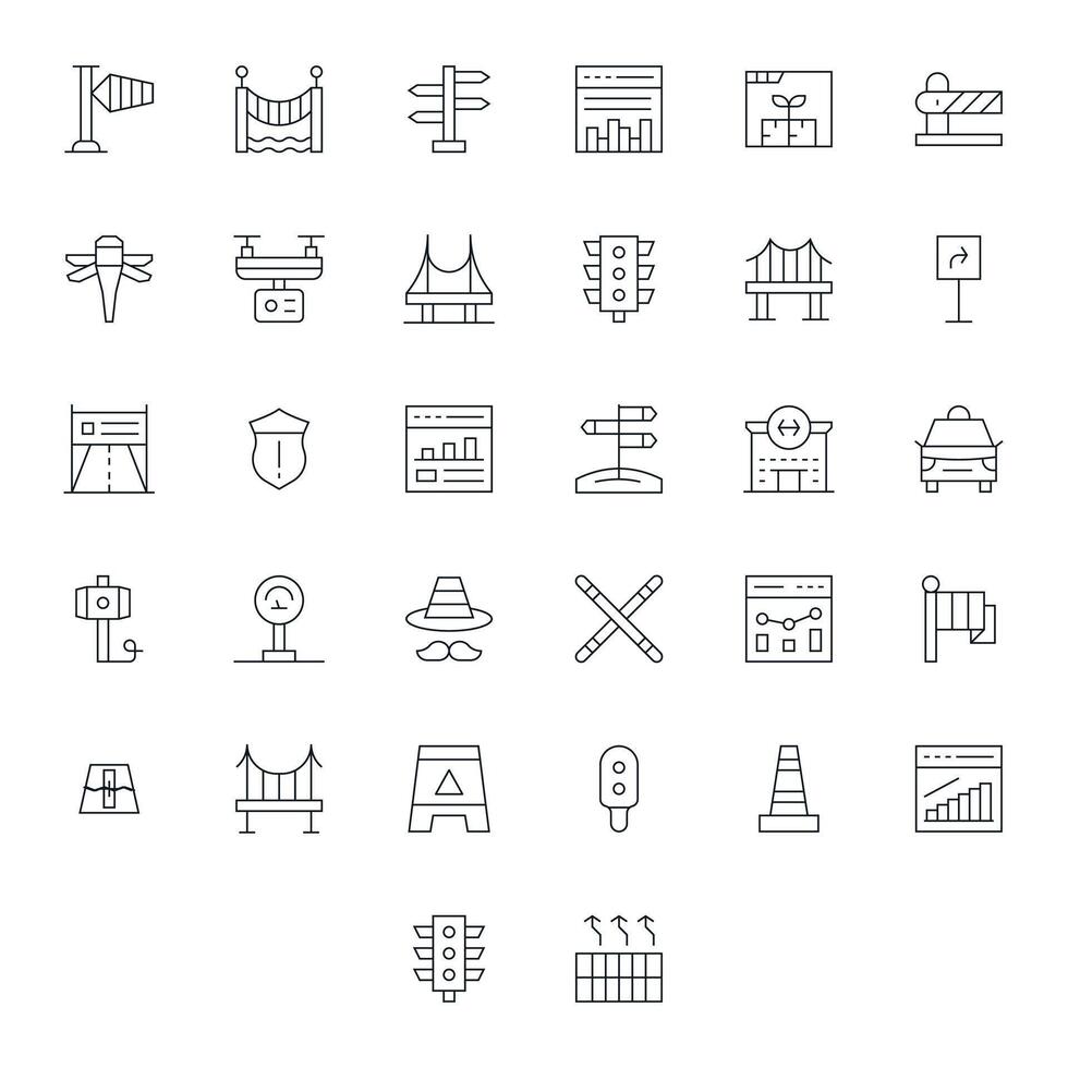 Traffic Icon Set with 32 Thin Line 256x256 Grid Fitted Graphics vector
