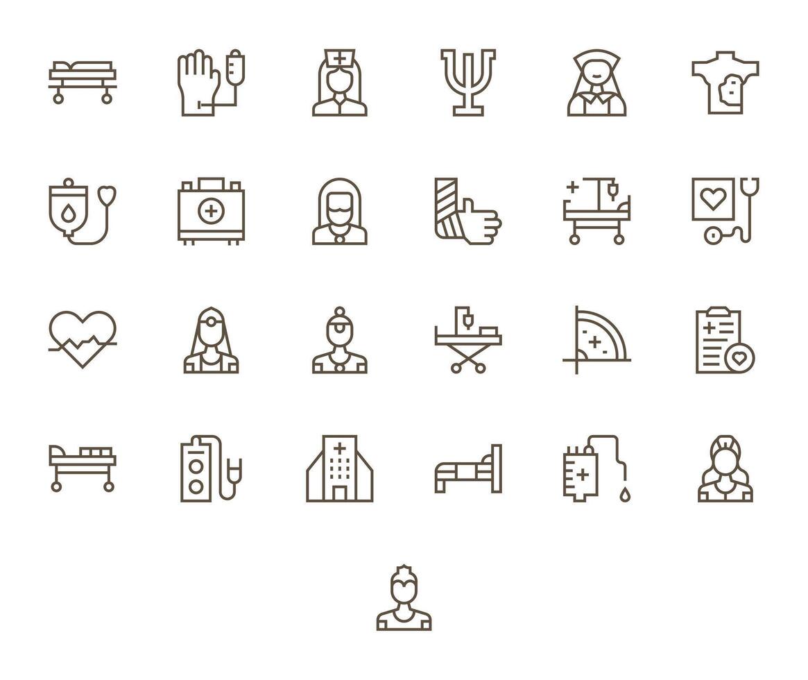 Patient Care Scalable Set featuring 25 Pixel Optimized Regular Line 256x256 Icons vector