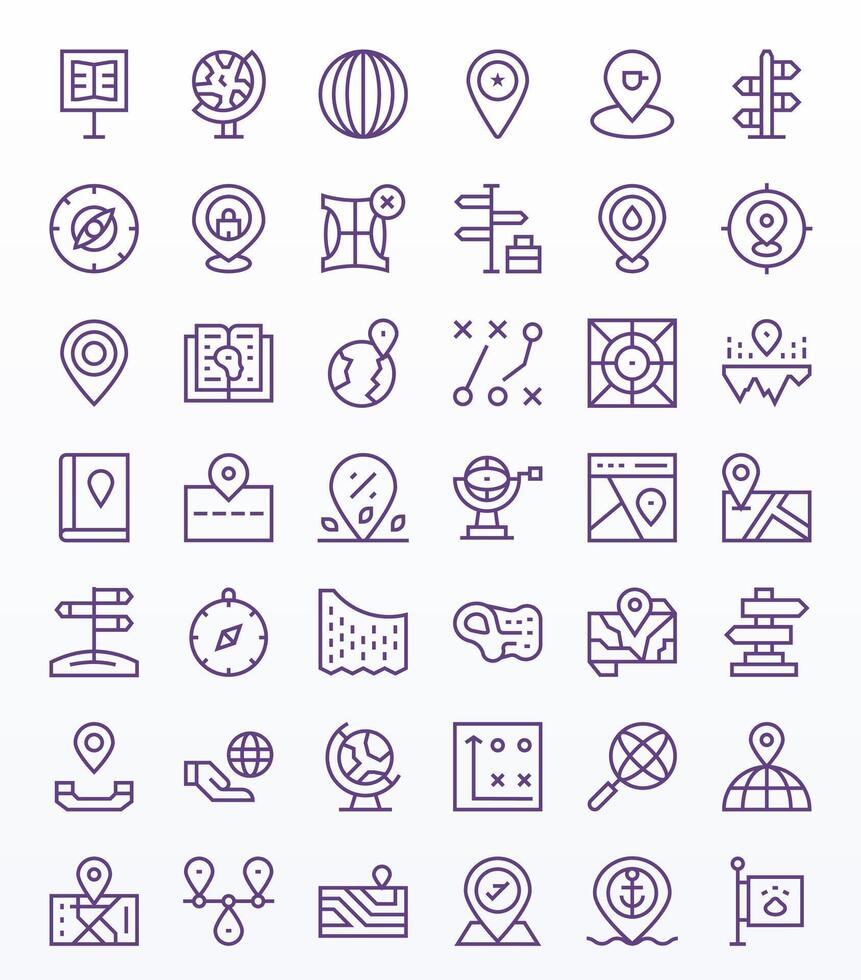 Regular Line Grid Fitted Icons from Map Set with 42 128x128 Icons Free Vector