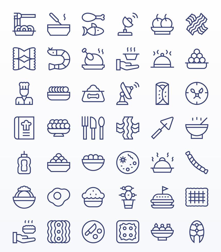 42 Icons inspired by Dish in Pixel Optimized 256x256 Regular Line quality vector