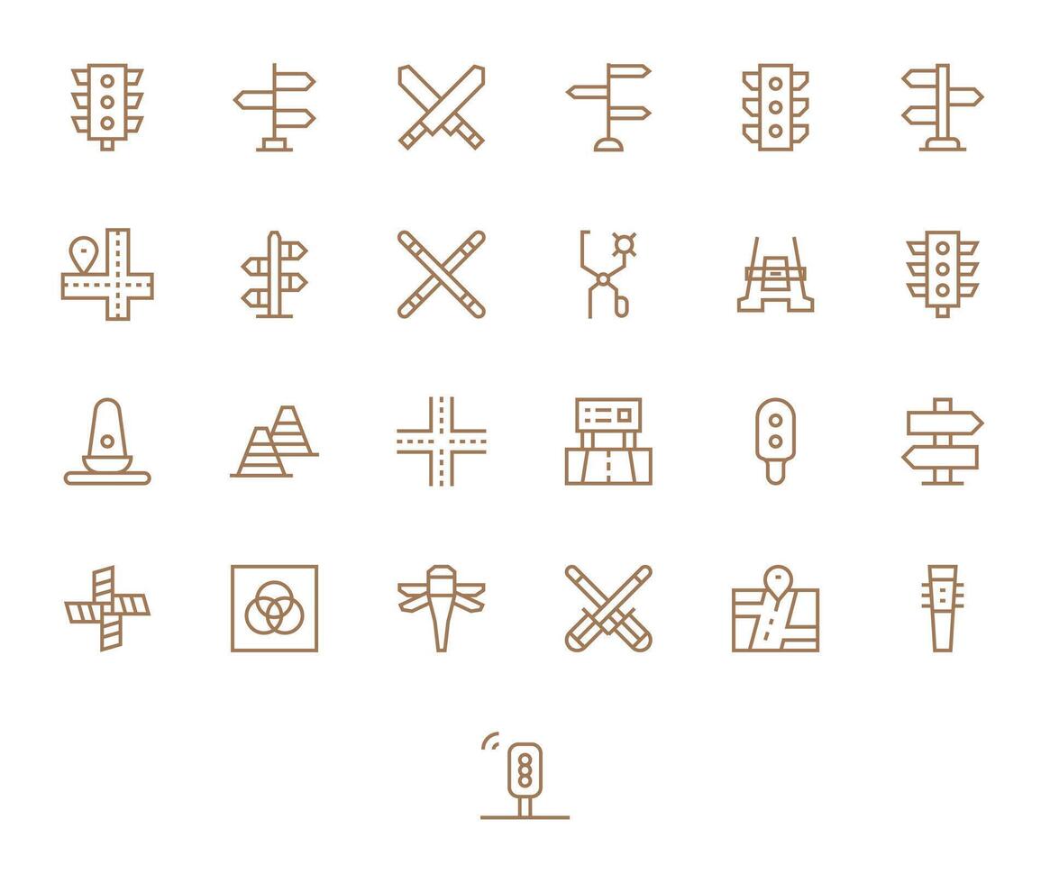 25 Retina Ready Regular Line Icons for Intersection with Pixel Optimized precision vector