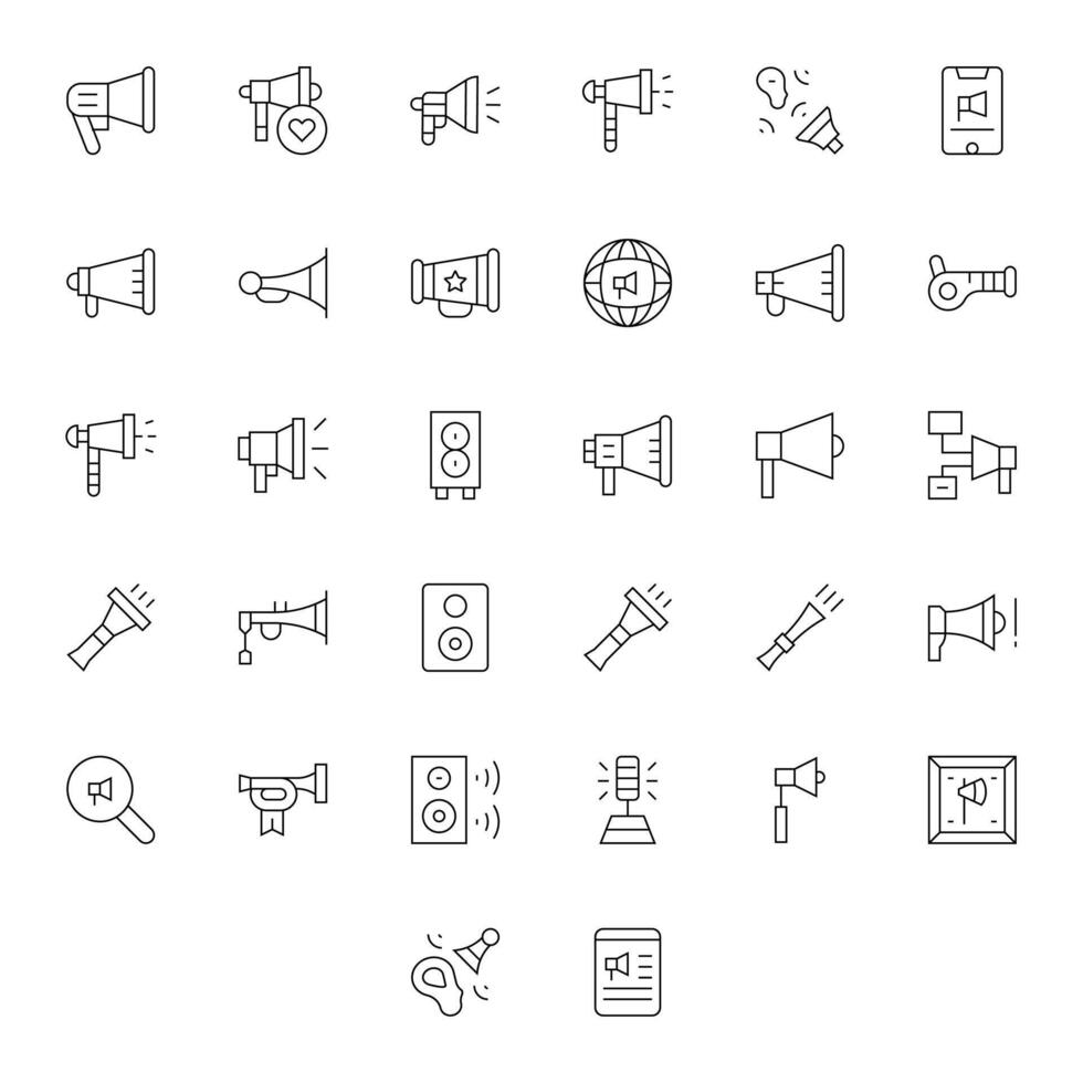 Loudspeaker Modern Collection with 32 Thin Line High Resolution Pixel Aligned Icons Free Vector