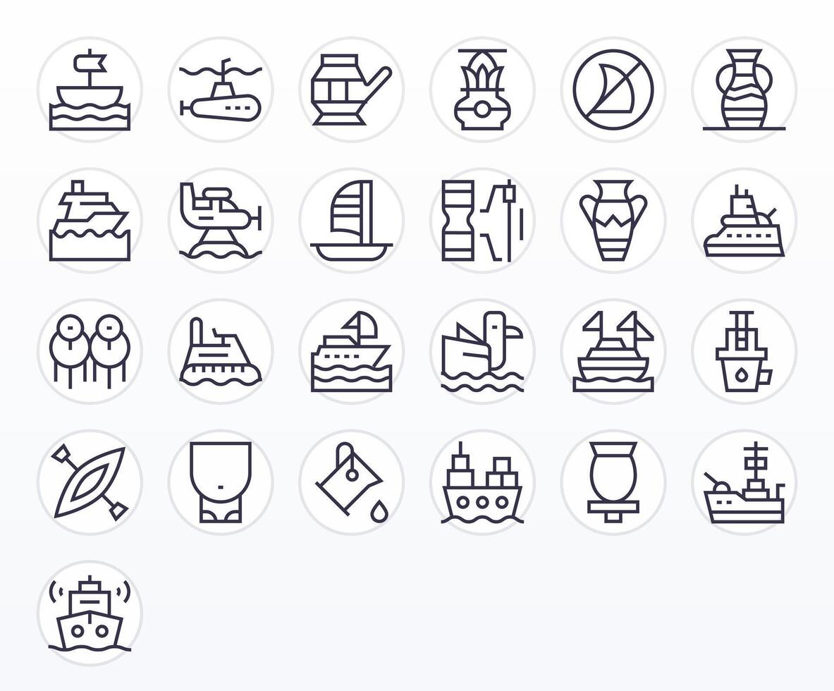 25 High Resolution Regular Line Icons optimized for Vessel Grid Fitted display vector
