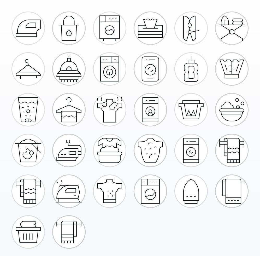 32 Thin Line Pixel Aligned Icons tailored for Laundry High Resolution interface vector