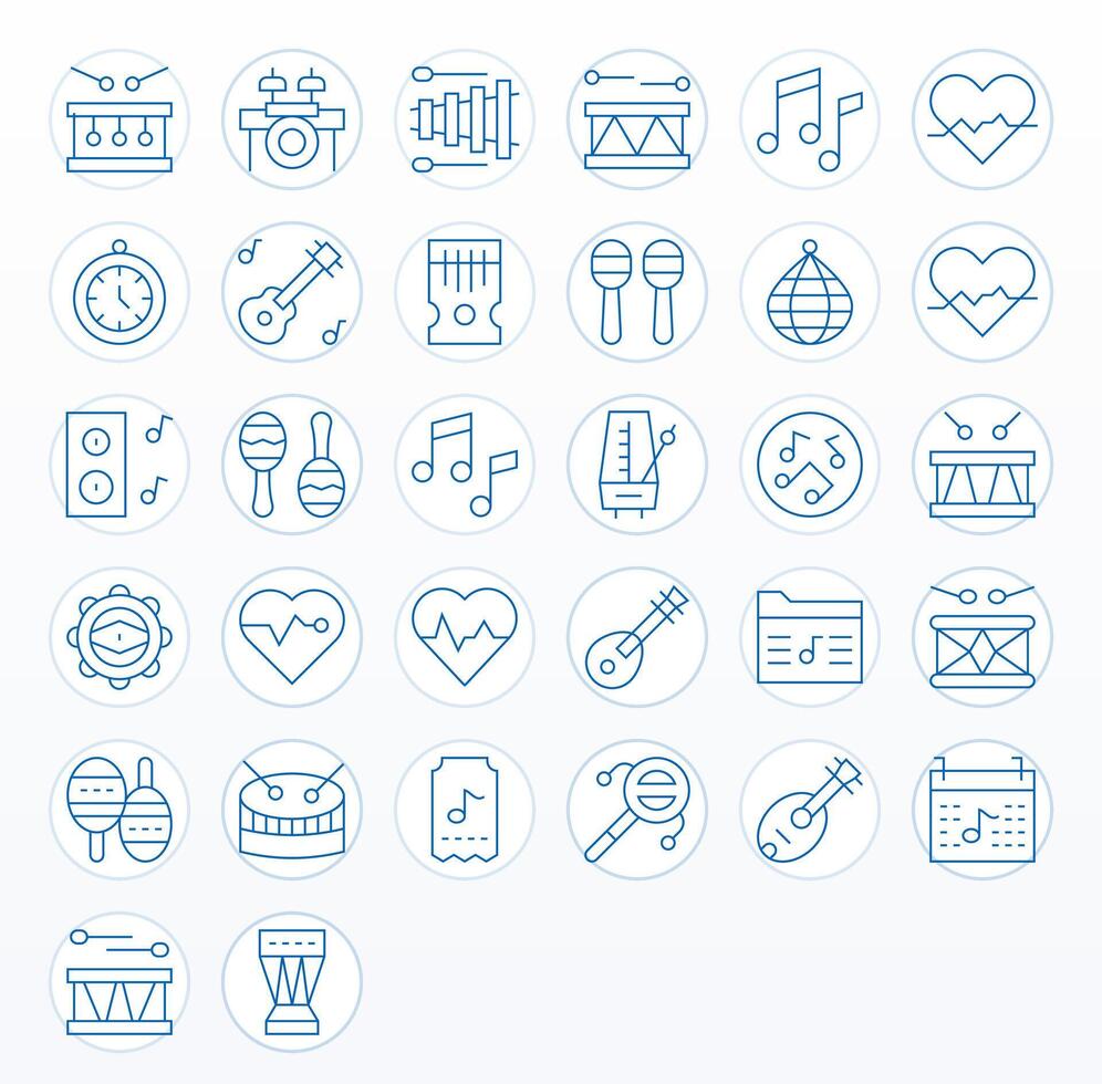 32 128x128 Thin Line Icons optimized for Rhythm Pixel Aligned display vector