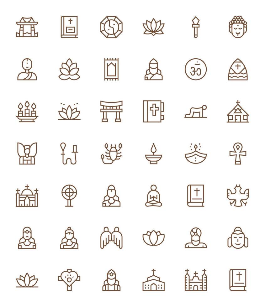 42 Regular Line Icons designed for Spiritual in High Resolution Pixel Optimized format Free Vector