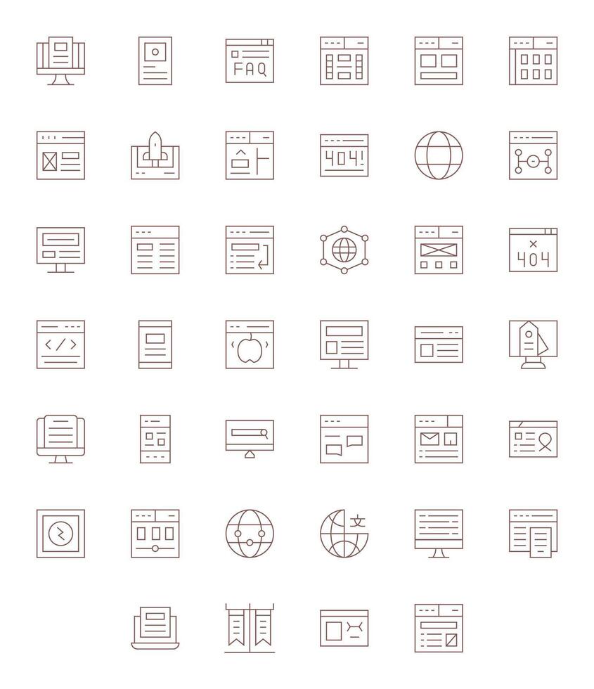 Webpage 256x256 Icon Pack with 40 Thin Line Pixel Optimized Elements Free Vector