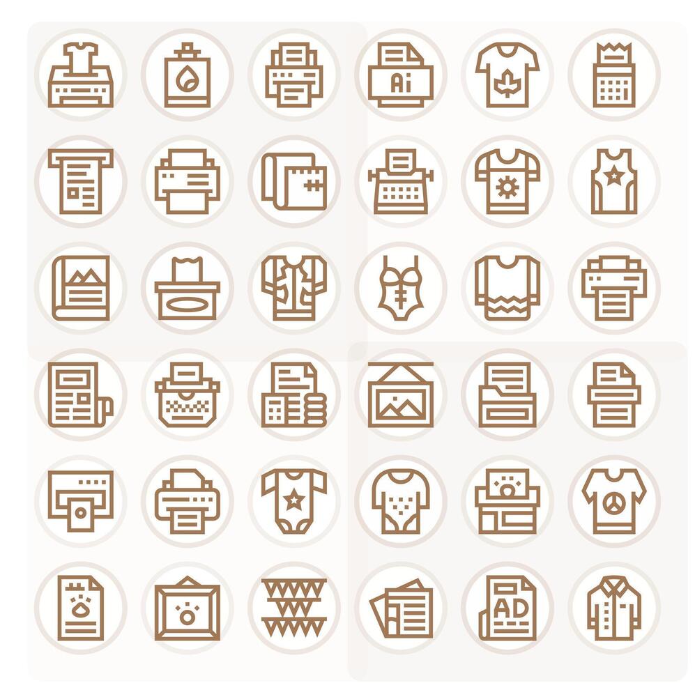 Bold Line Pixel Optimized Icons from Print Set with 36 64x64 Icons Free Vector
