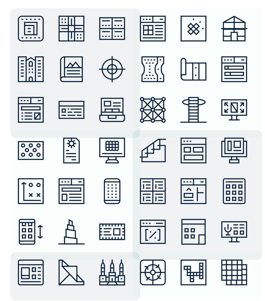 Layout Modern Collection with 42 Regular Line 256x256 Display Perfect Icons vector