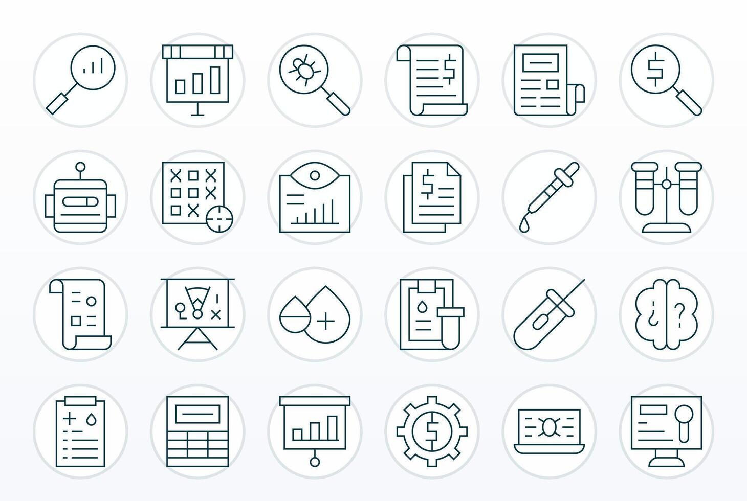 Analysis Icon Collection featuring 24 Pixel Optimized High Resolution Thin Line Designs vector