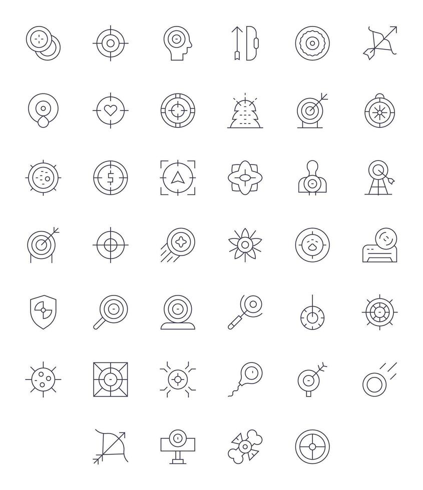 Aim Display Perfect Set with 40 High Resolution Thin Line Icons Free Vector