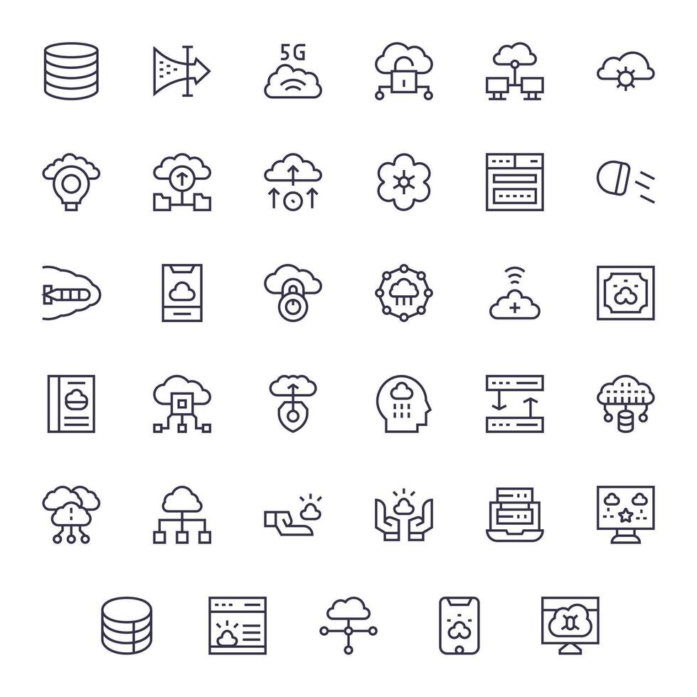 Cloud Computing Graphics Pack including 35 Regular Line High Resolution Grid Fitted Icons vector