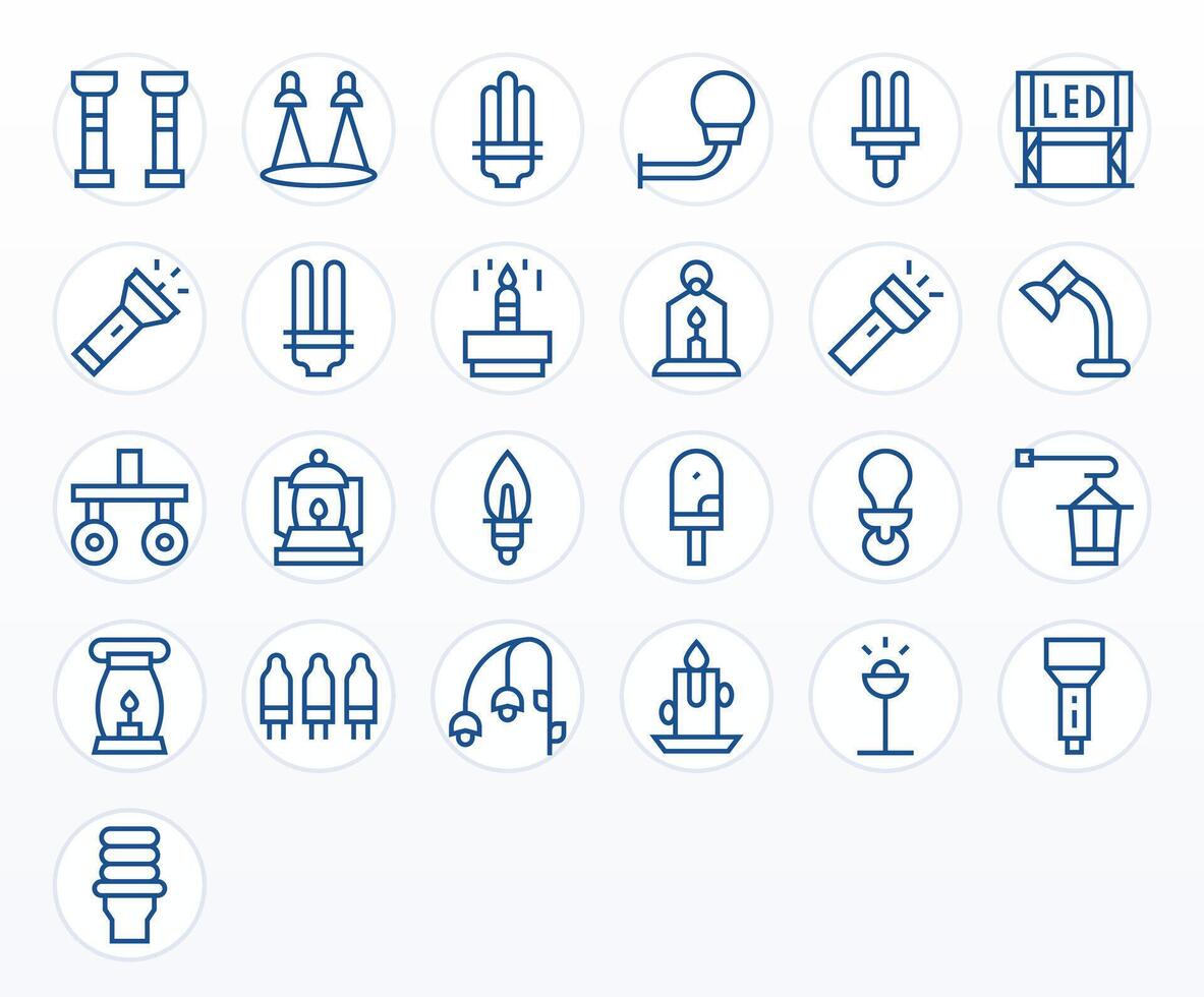 Light Source Digital Pack containing 25 PIXEL Perfect Regular Line High Resolution Icons vector
