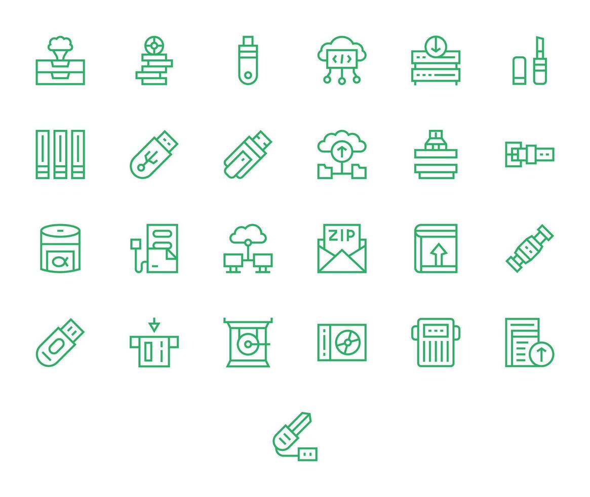 25 Icons for Digital Storage optimized in Editable High Resolution Regular Line resolution Free Vector