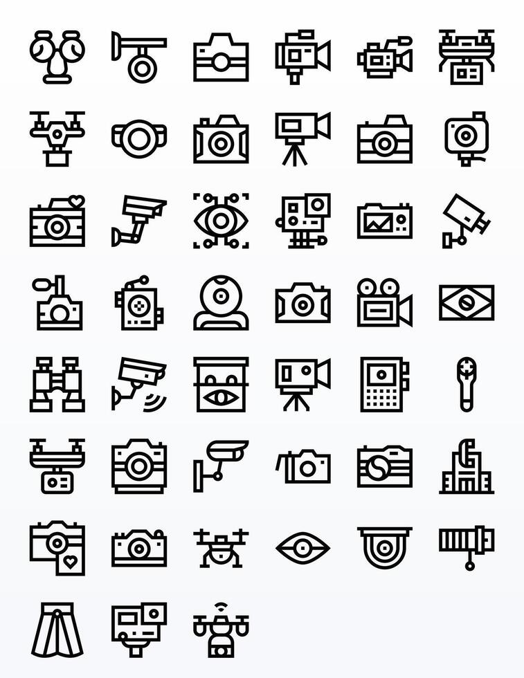 45 High Resolution Bold Line Icons optimized for Camera PIXEL Perfect display Free Vector