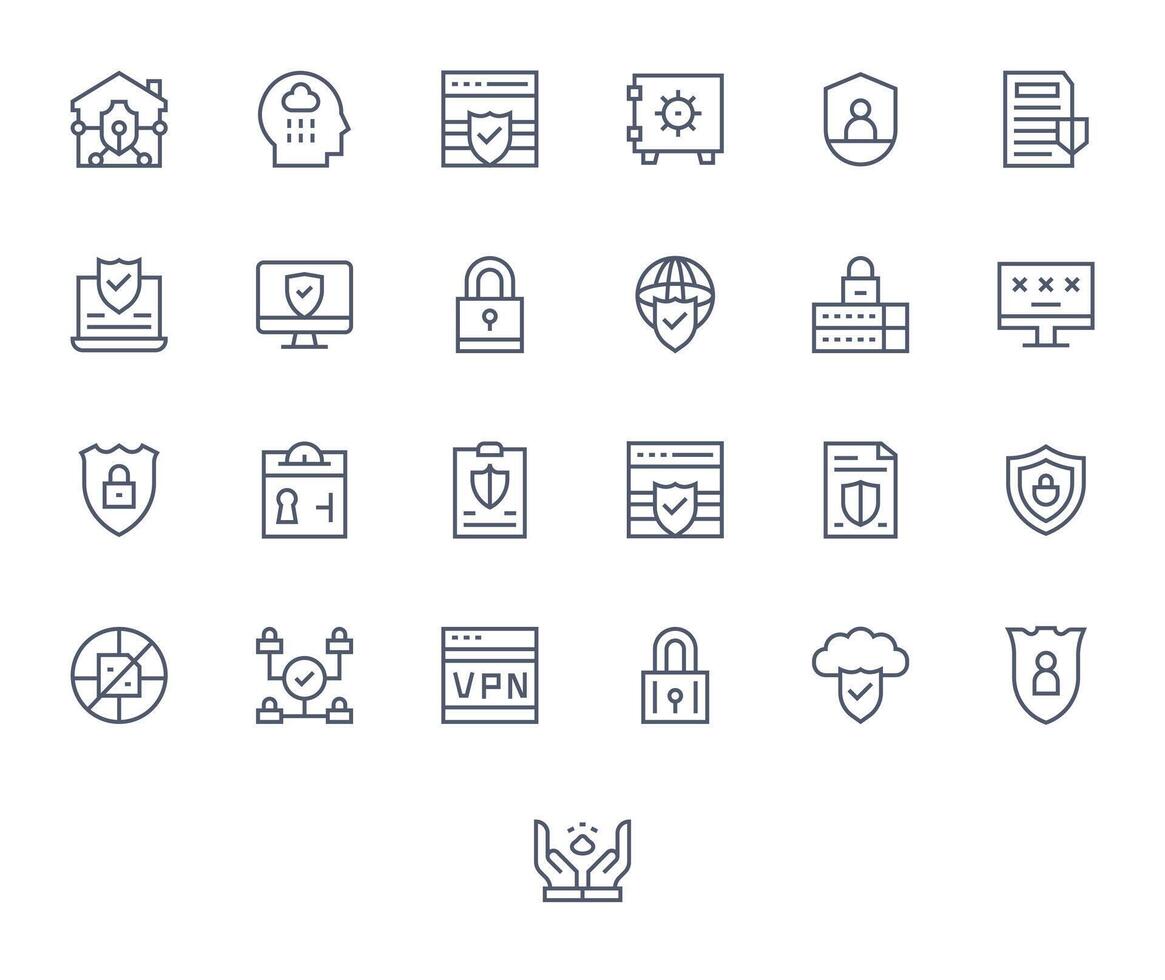 Digital Security Design Icons featuring 25 PIXEL Perfect Regular Line Style vector