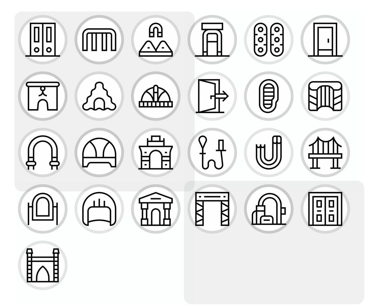 Regular Line Style Passage Icons with 25 High Resolution Pixel Aligned Designs vector