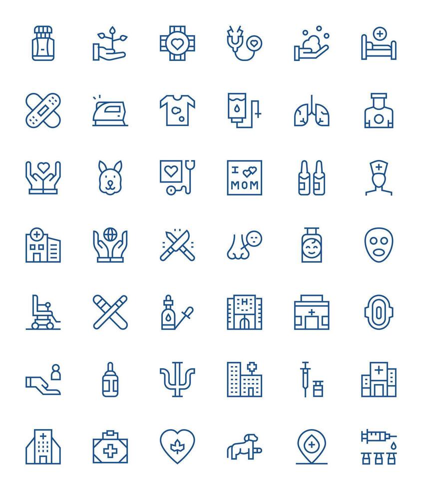 Care Icon Toolkit featuring 42 Pixel Optimized 256x256 Regular Line elements vector