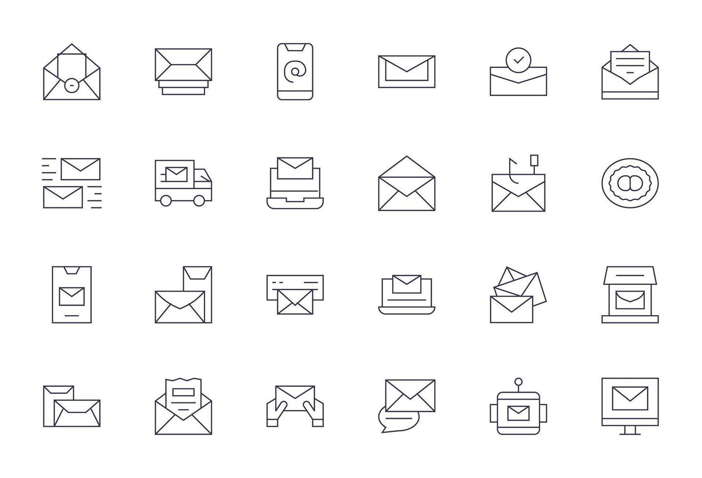 24 Digital Mail Pixel Optimized Icons in High Resolution Thin Line Aesthetic Free Vector