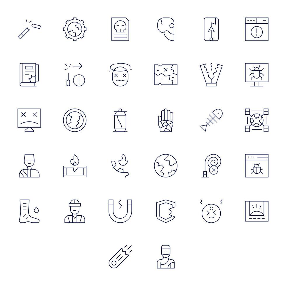 Broken Modern Collection with 32 Thin Line High Resolution Detail Enhanced Icons vector