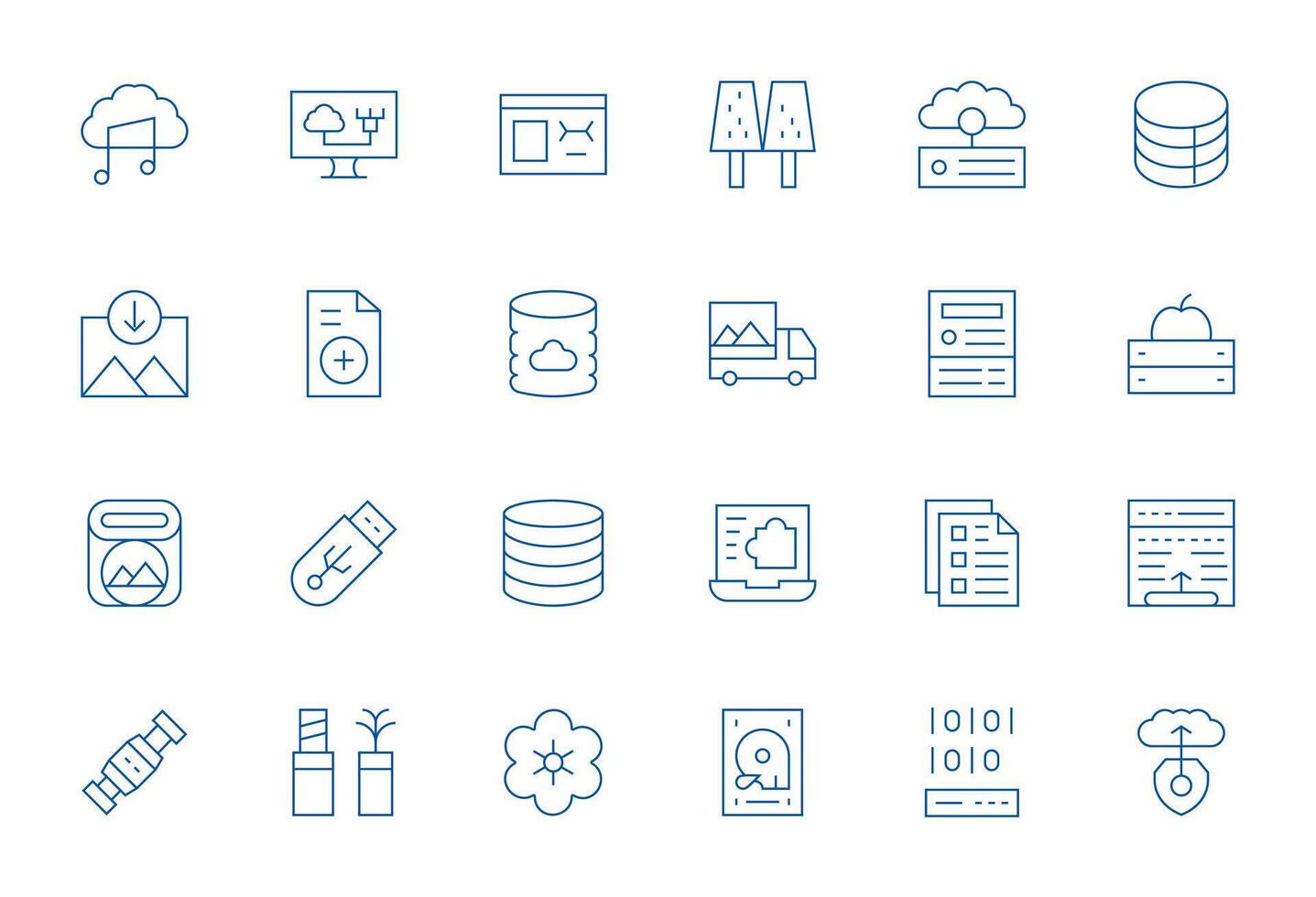 24 Icons for File Storage featuring High Resolution Editable Thin Line Graphics Free Vector