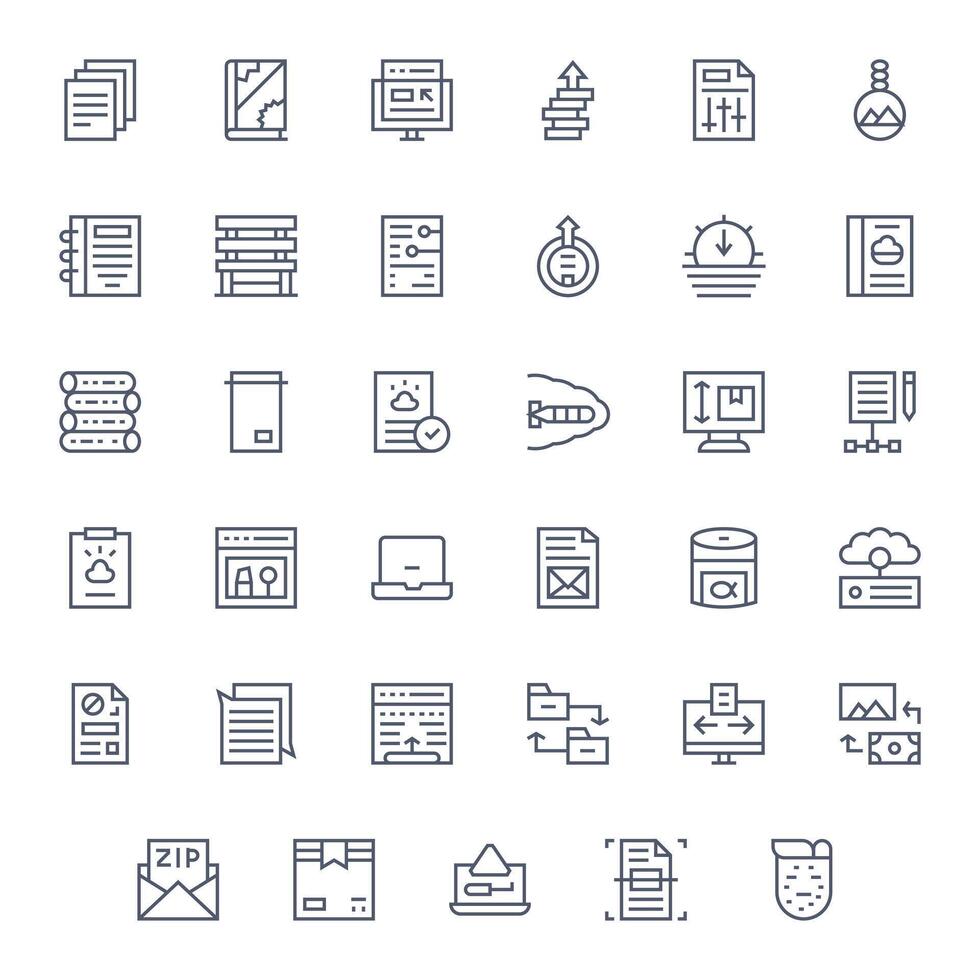 File Management Graphics featuring 35 Regular Line Grid Fitted 256x256 Designs vector