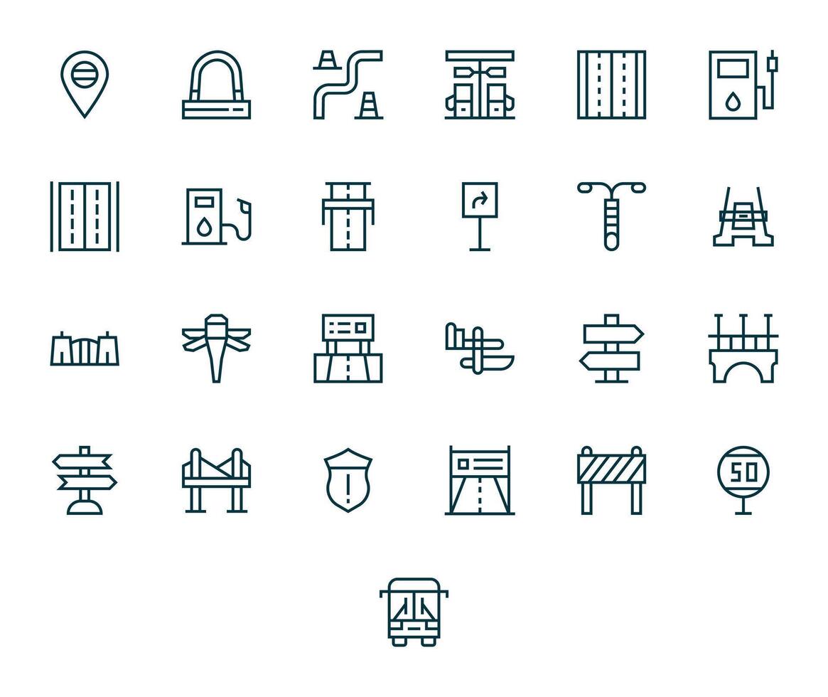 25 Pixel Optimized Icons themed around Highway in Retina Ready Regular Line format vector