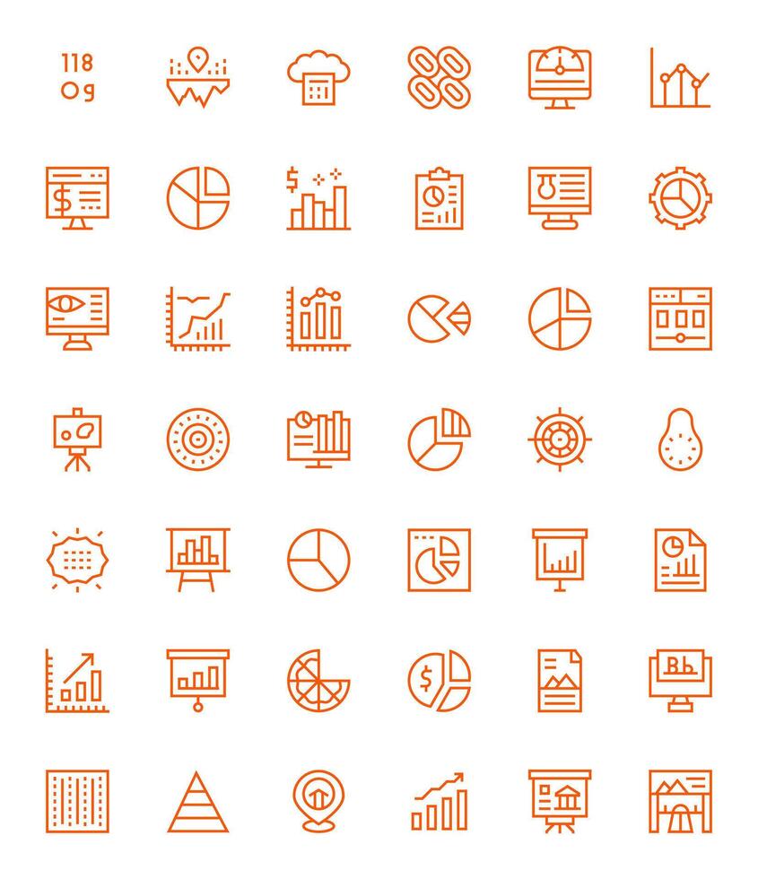 Data Visualization Icon Set with 42 Regular Line High Resolution Detail Enhanced Graphics Free Vector