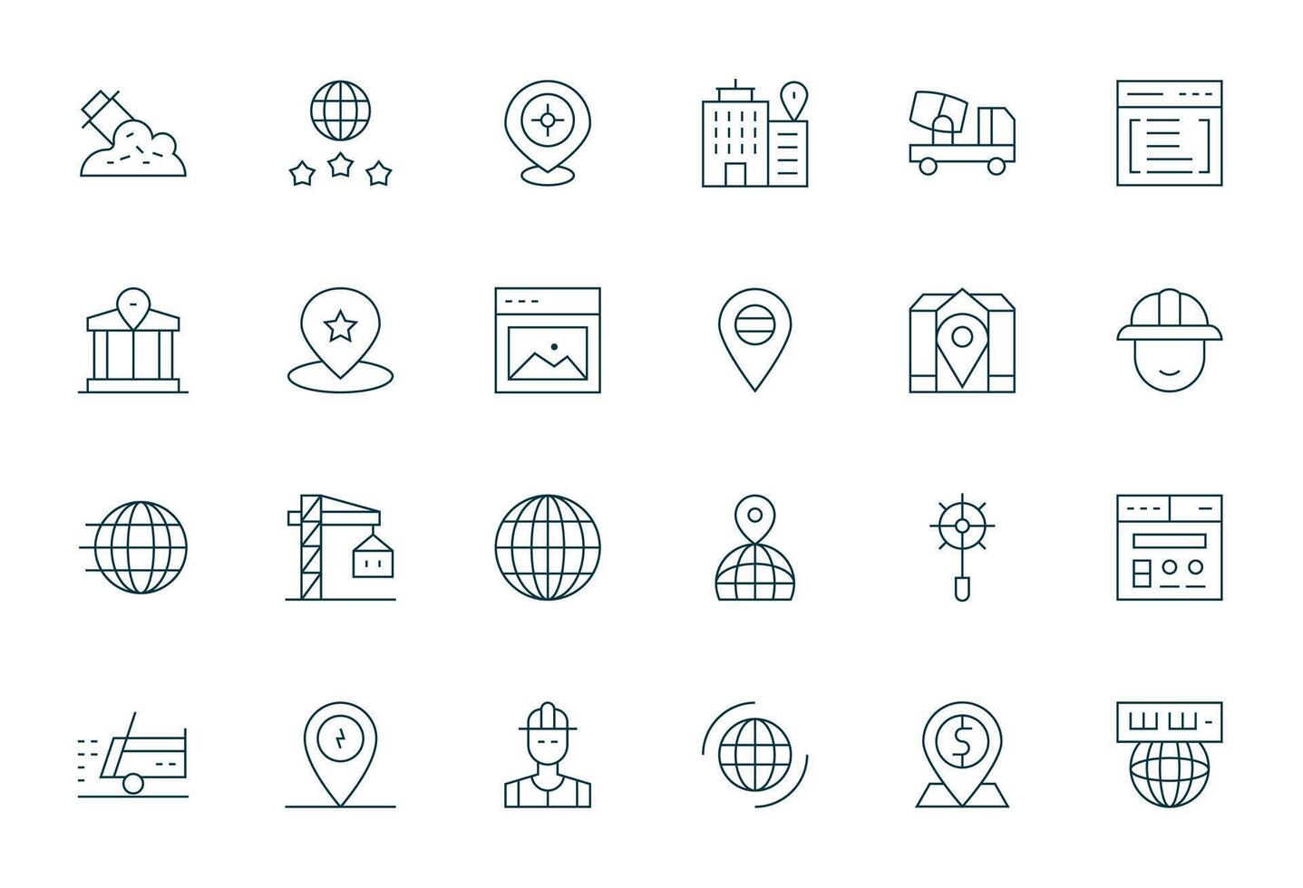 Site Comprehensive Bundle with 24 Detail Enhanced Thin Line High Resolution Icons Free Vector