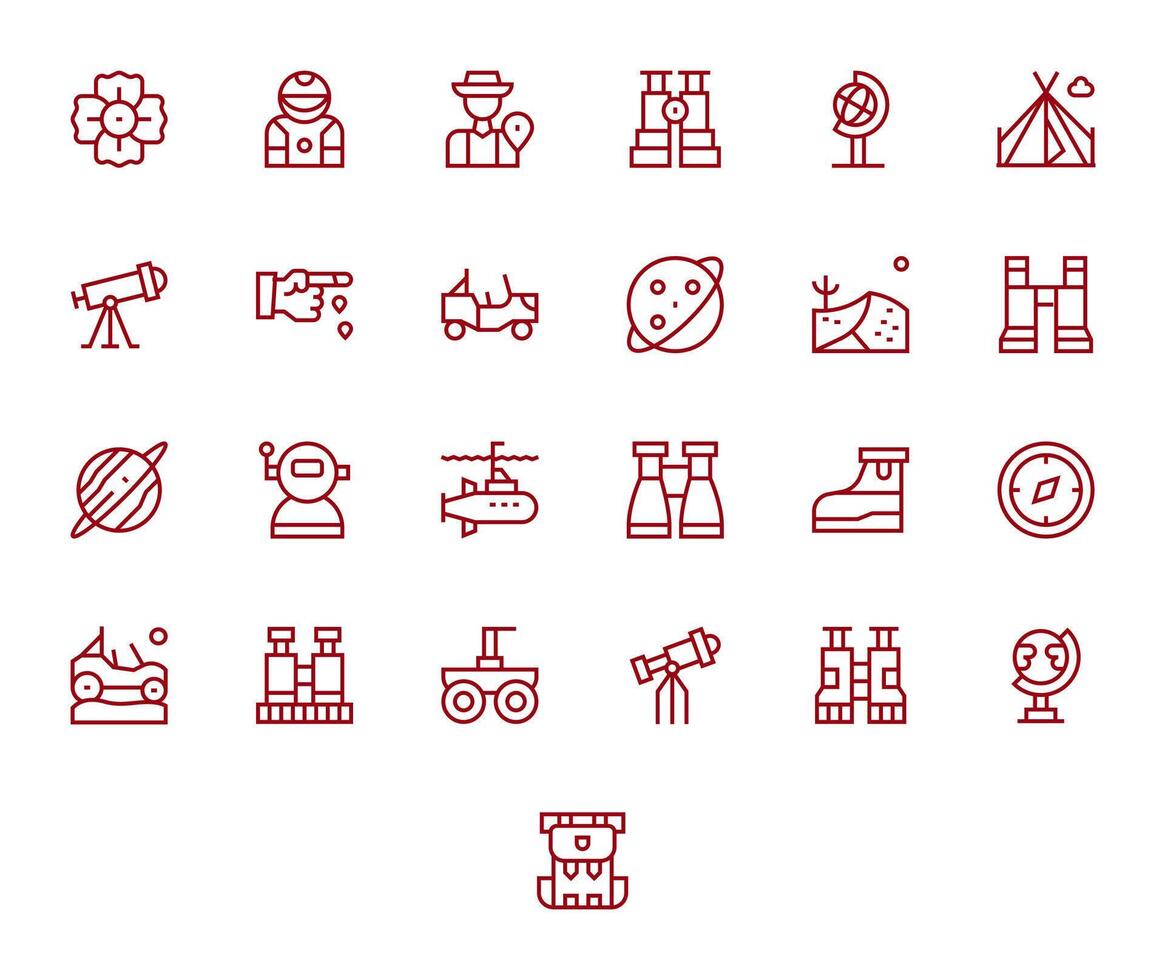 Exploration Icon Collection with 25 High Resolution Regular Line Designs vector