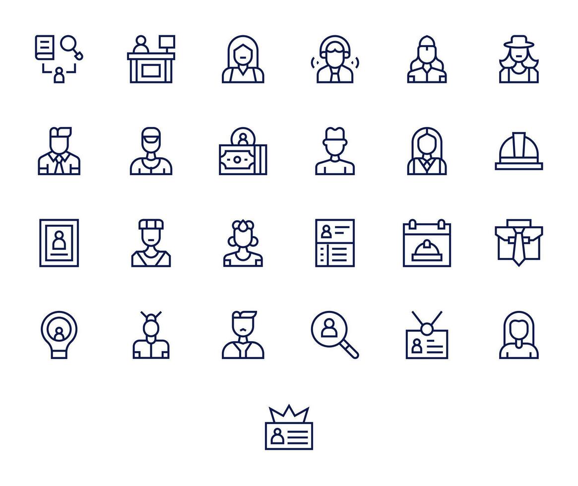 25 Retina Ready Regular Line Icons optimized for Employee Pixel Aligned display vector