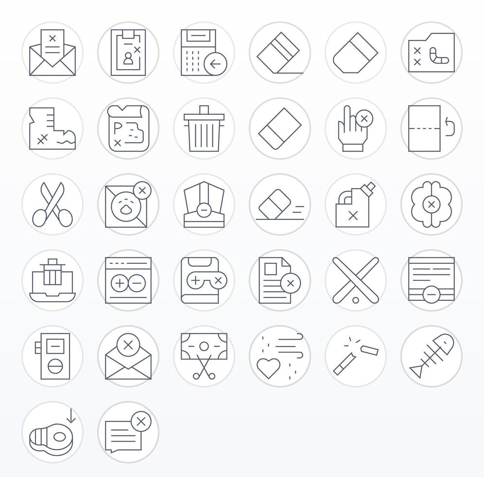 32 Icons for Delete featuring 256x256 Grid Fitted Thin Line Graphics vector