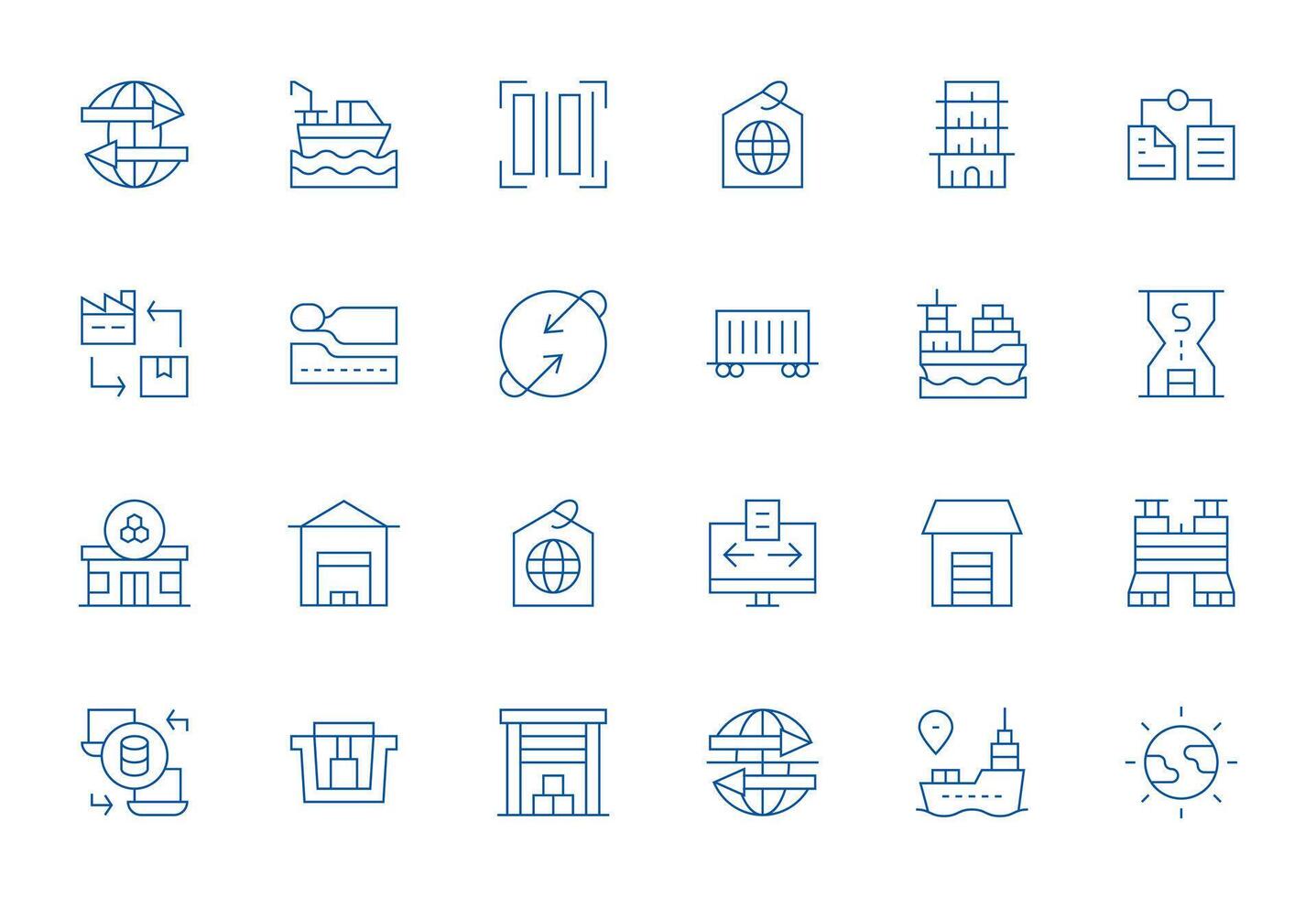 Export Icon Set with 24 Thin Line 128x128 Pixel Aligned Graphics vector